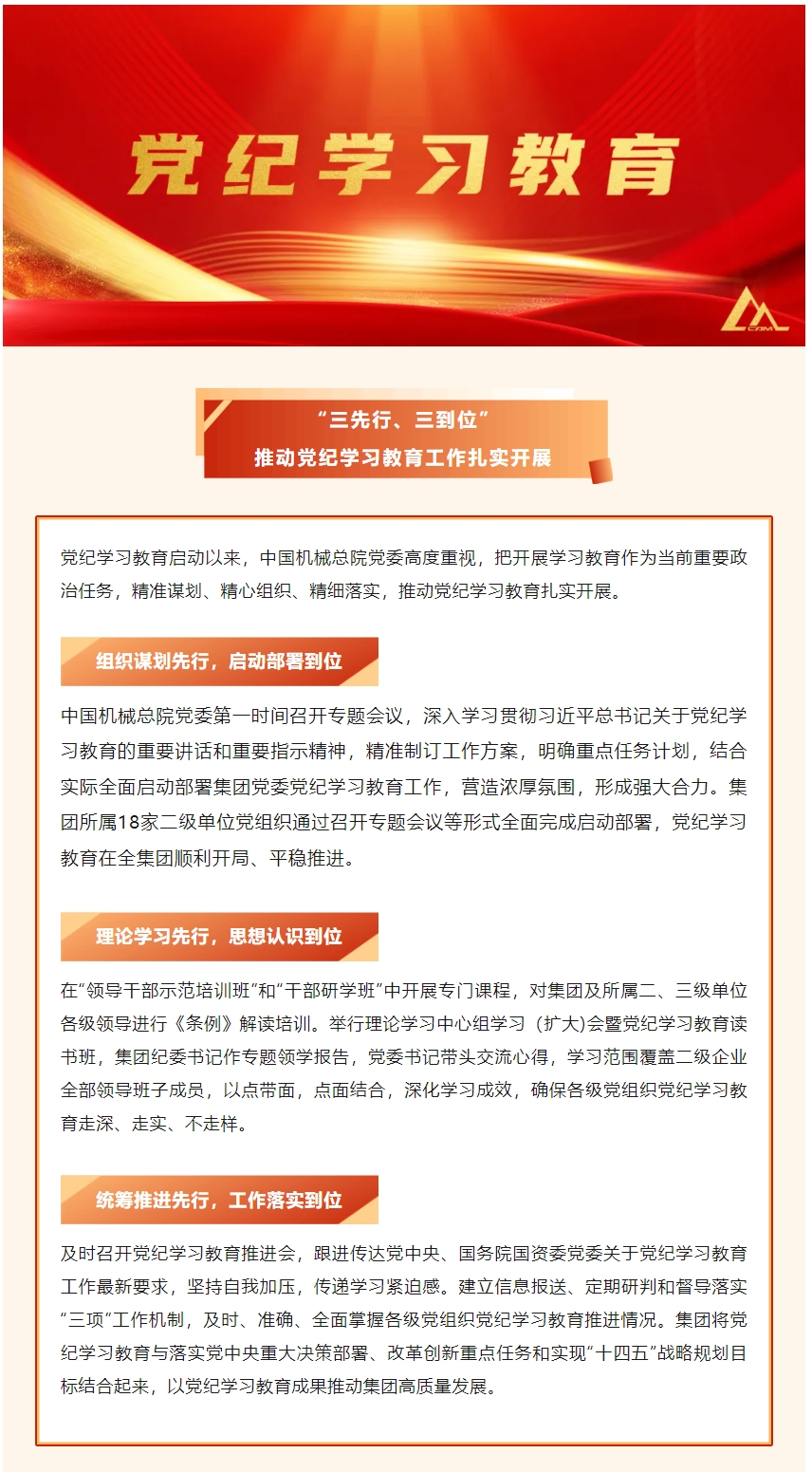 中國(guó)機(jī)械總院:三先行 三到位 推動(dòng)黨紀(jì)學(xué)習(xí)教育工作扎實(shí)開展